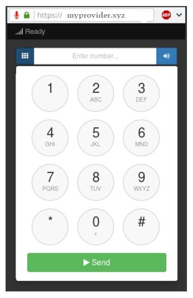 The webphone is integrated in the web browser. It allows the user to place calls through the browser once it is started. The user can also receive calls through the webphone if it is configured properly by the administrator.