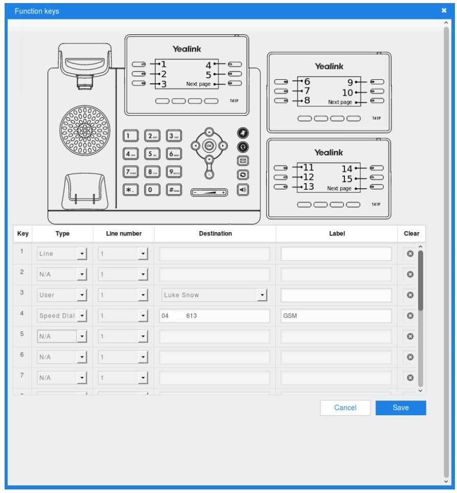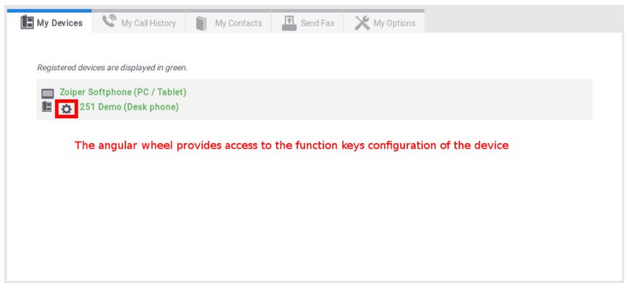 Notice that there is an angular wheel next to the devices of Desk phone type. It allows the user to configure his own function keys.