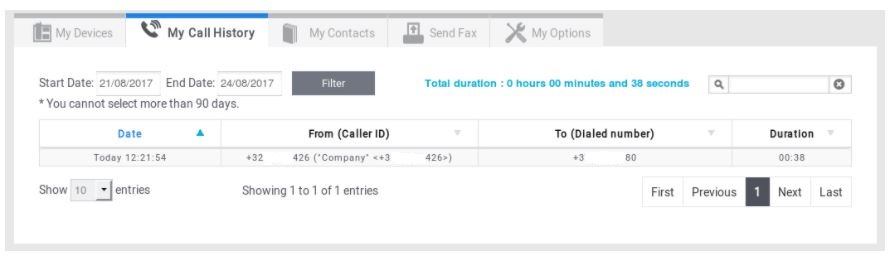 This Tab allows the user to consult his own call history.